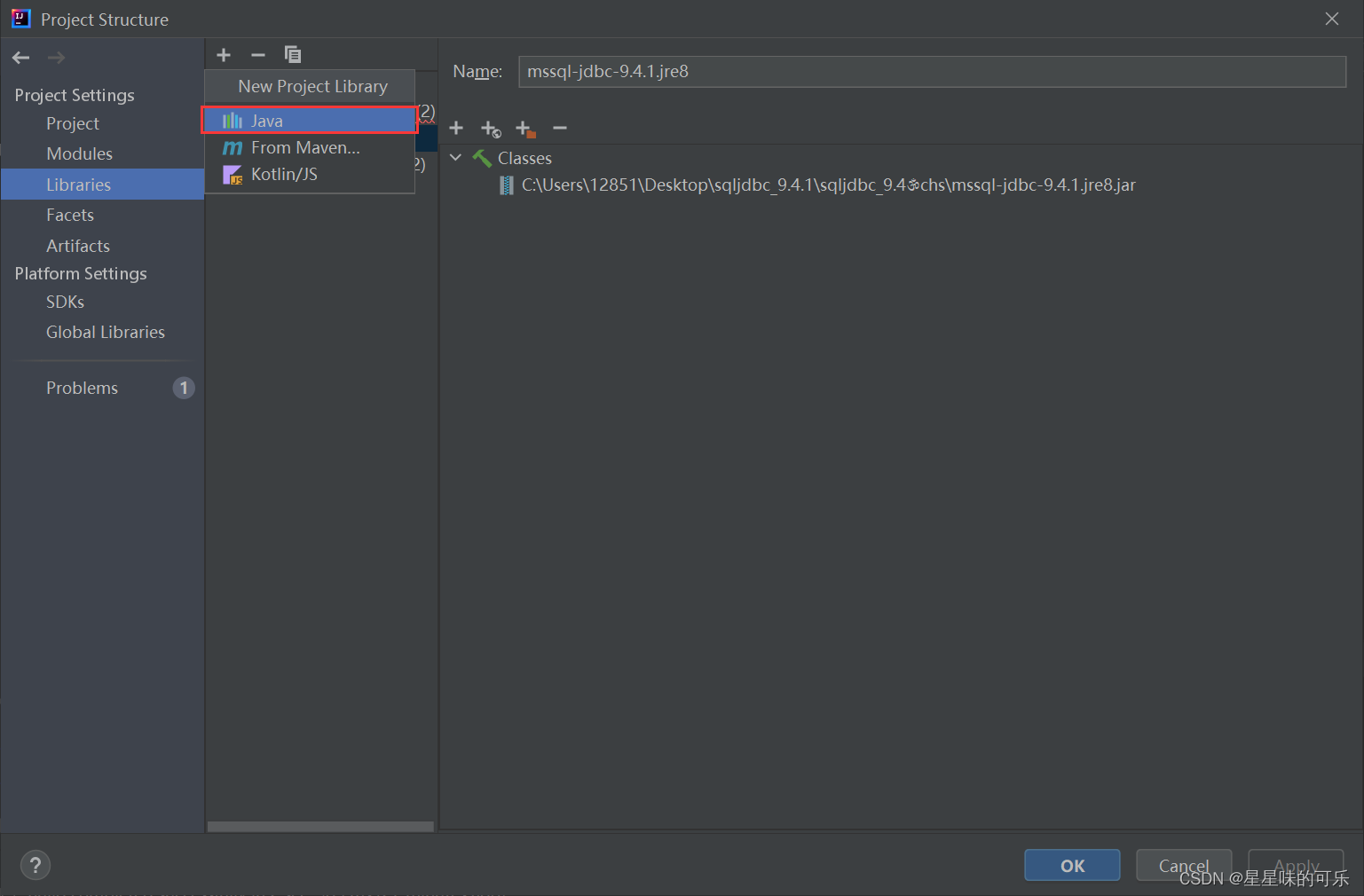 点击"+“,点击"Java”,添加所下载的jre路径。(jre一定要与jdk版本适配,否则会报错,我就是因为这个原因一直配置不好)