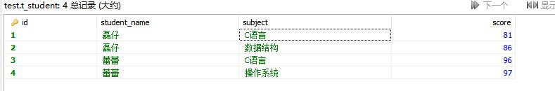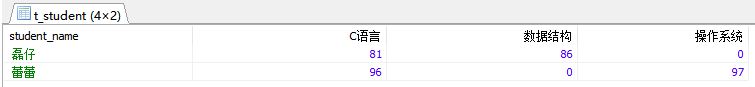 sum(case ts.subject when '数据结构' then ts.score else '' end) as 数据结构,