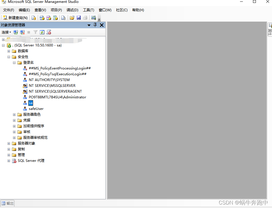 1、打开Sqlserver,选择登录名下的账户右击点击属性