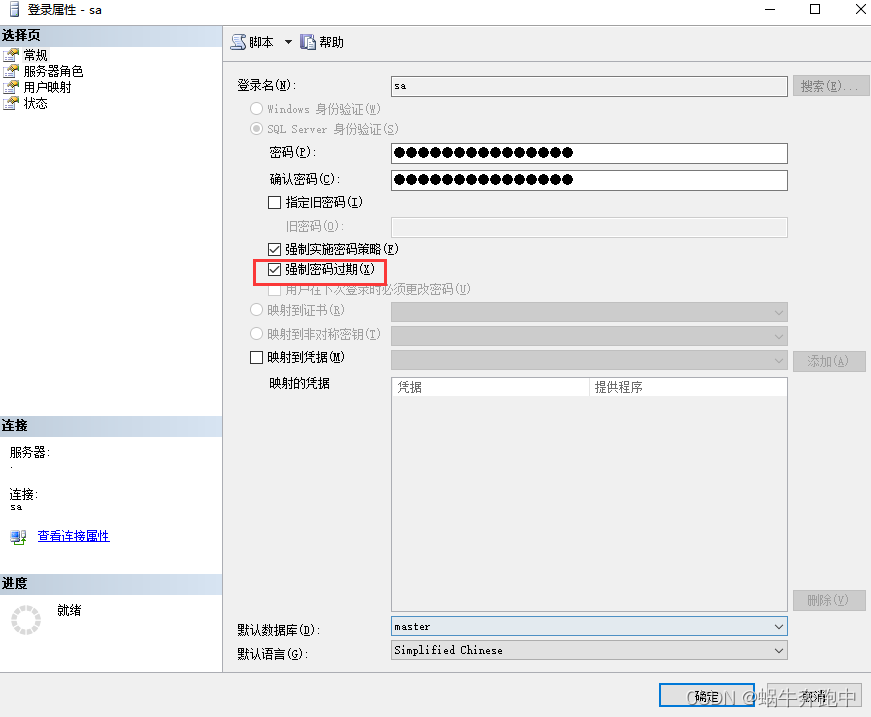 到此这篇关于SQLServer数据库密码短时间强制过期的解决的文章就介绍到这了,更多相关SQLServer密码强制过期内容请搜索编程学习网以前的文章希望大家以后多多支持编程学习网!
