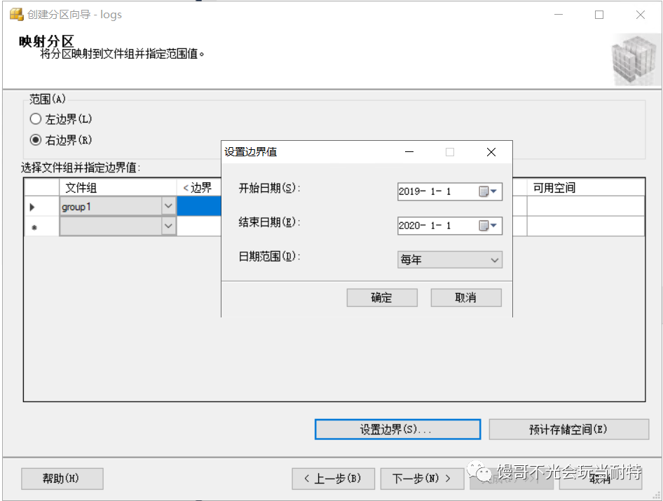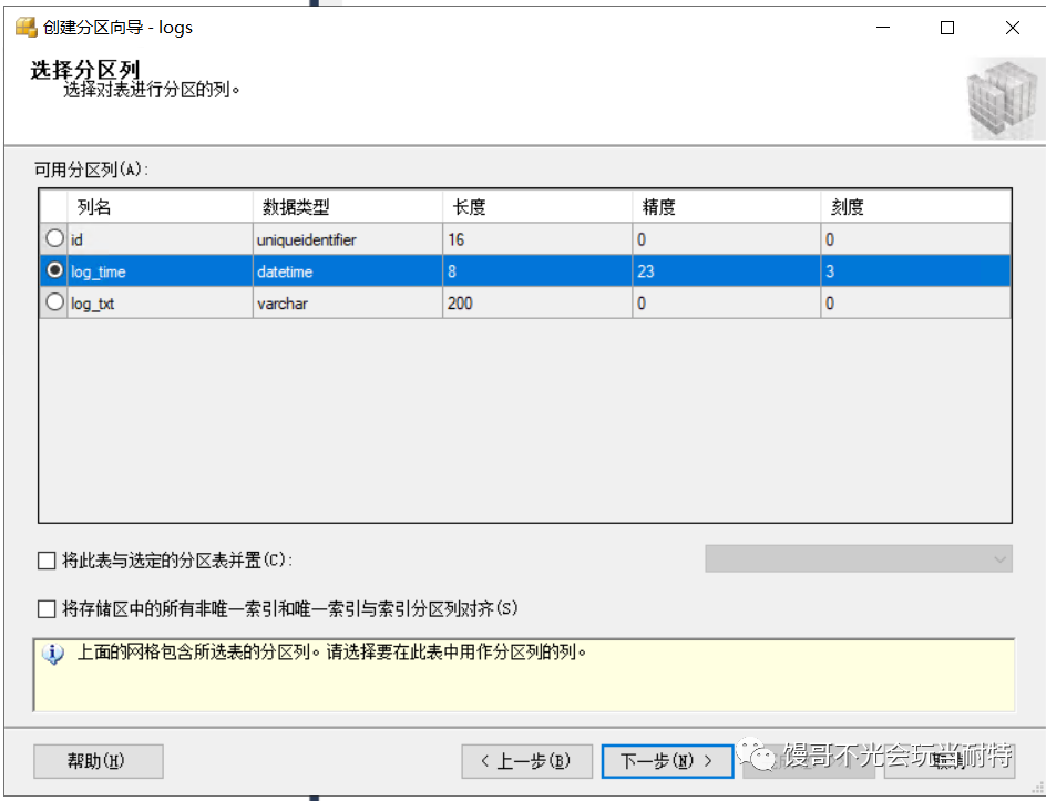选中logs表=>存储=>创建分区,启动分区向导工具。