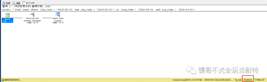 我们的测试方案:新建一张log2表,使用上面的代码按年份写入2000000数据。然后使用select语句同时读取2019,2020年的数据。把log表转换成分区表,重新测试select的时间。比较两次读取数据的时间。