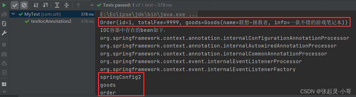 由于不写xml配置,所以在两个类上方都要加上 @Component 注解,通过注解的方式将其交给Spring IOC容器管理,@Value注解则用于给8种基本数据类型以及String类型做依赖注入,@Autowired是针对引用类型的,这里不再多说了。