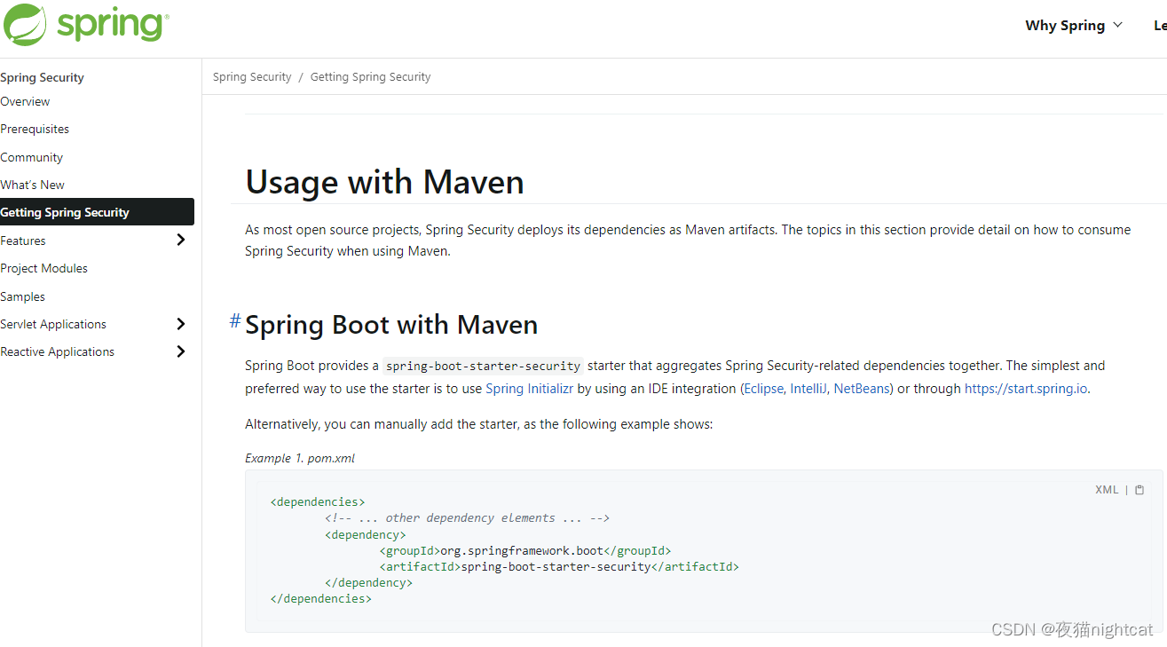 我们知道,Spring的社区支持特别完善,Spring全家桶的文档特别好,那么我们话不多说,打开Spring Security 官网看一下。