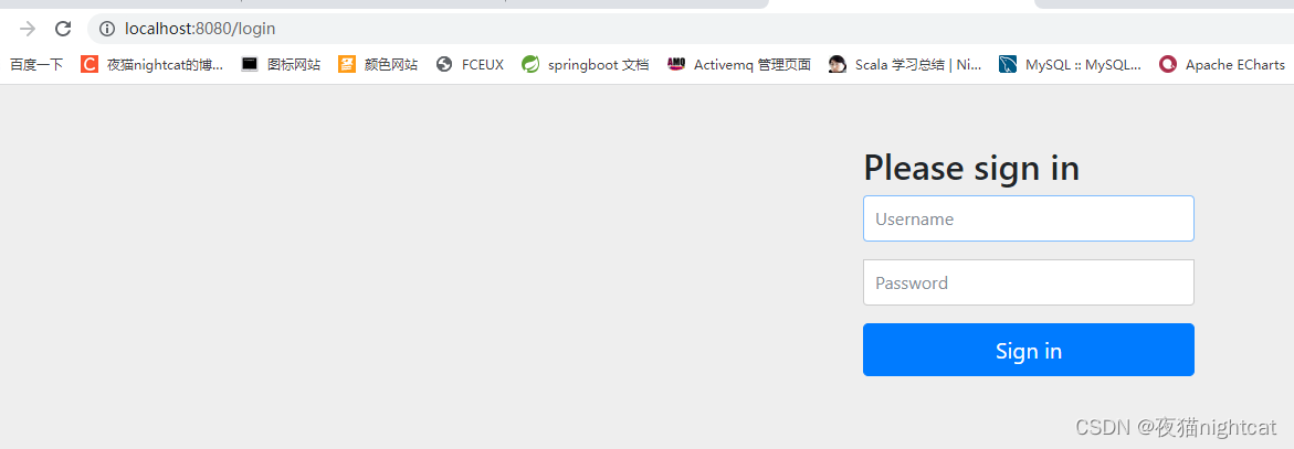 这个时候,如果再访问 hello接口,就会出现一个页面,让咱们登录。