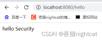 }把项目启动起来,之后输入localhost:8080/hello,就会看到浏览器显示helloSecurity。