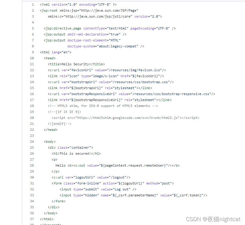 我们实现了登录,退出登录怎么做呀?我们不知道引入SpringSecurity之后怎么做,还是看它的例子,我们发现它并没有编写退出登录的接口,我们以前的常规操作就是,点击按钮然后把当前登录人从Session中remove掉就行了。那SpringSecurity是怎么做的呢?继续看它的例子。