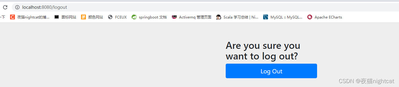 我们虽然没有找到它处理退出逻辑的自定义接口,但是我们发现它的页面中url是/logout,那么我们直接尝试一下从浏览器输入这个url