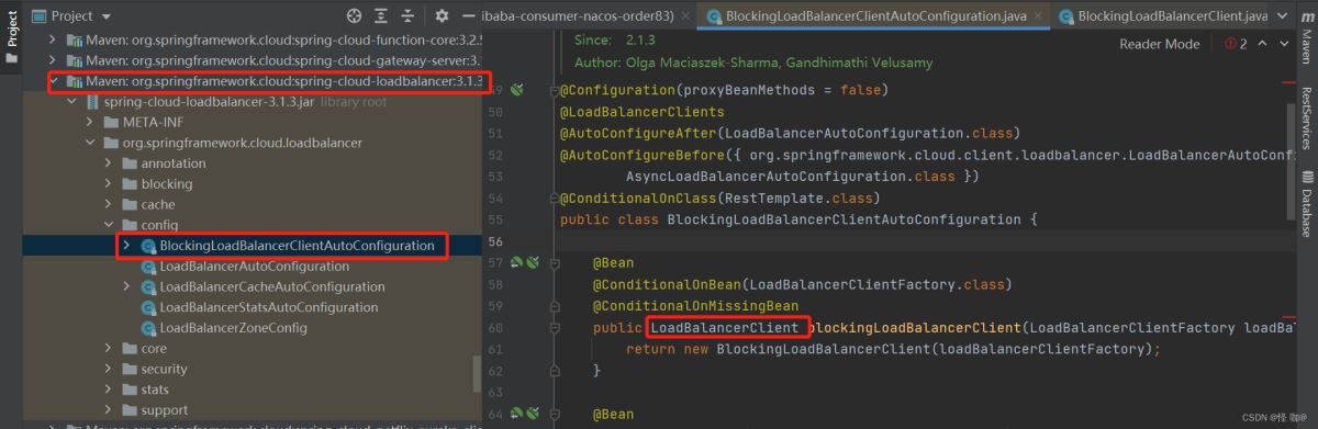 而nacos高版本依赖包没有引用ribbon依赖。ribbon早就已经彻底停更了,spring又自己出了一个