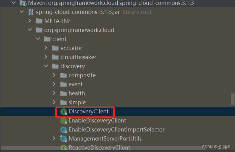 DiscoveryClient这个其实是个接口存放于cloud-commons包当中。