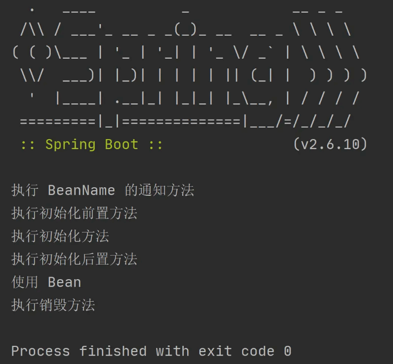 从上面的执行结果可以看出,代码执行顺序符合 Bean 生命周期的执行顺序: