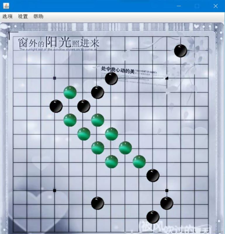 6、轮流下子是双方的权利,但允许任何一方放弃下子权,先形成5子连线者获胜。