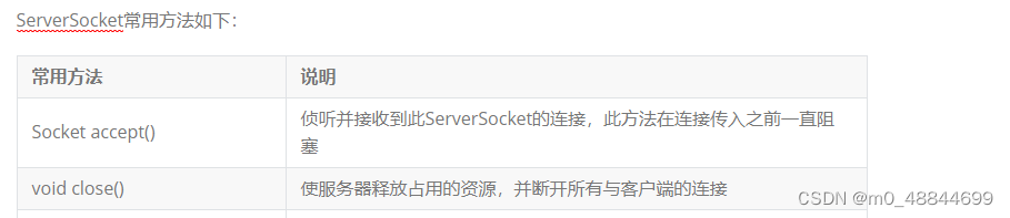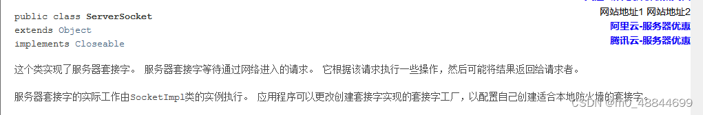ServerSocker类在他的api文档里面也说了他是实现服务器的一个类