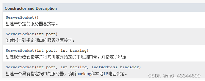 我们常用的构造方法是第一个ServerSocket()