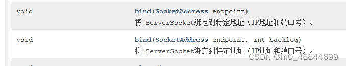 这个构造方法是创建一个没有绑定端口的对象,一般他和如下方法配套使用
