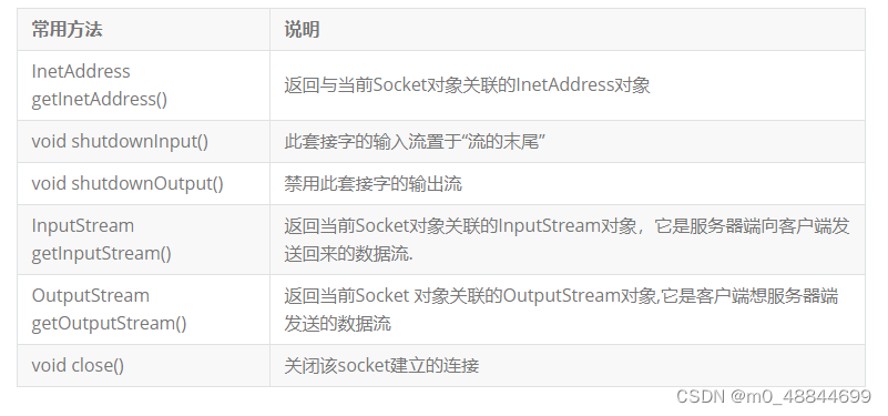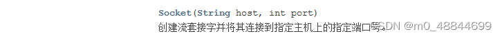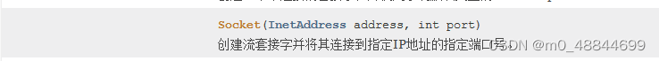 是创建一个连接到的一个指定的ip地址以及指定的端口号的服务器的socket对象.如果你得到的一个Ip地址是一个字符串类型我们还可以使用另一个构造方法