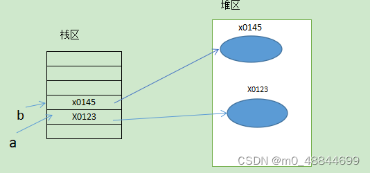 在堆栈中创建一个对象。所以a与b的地址不一样。