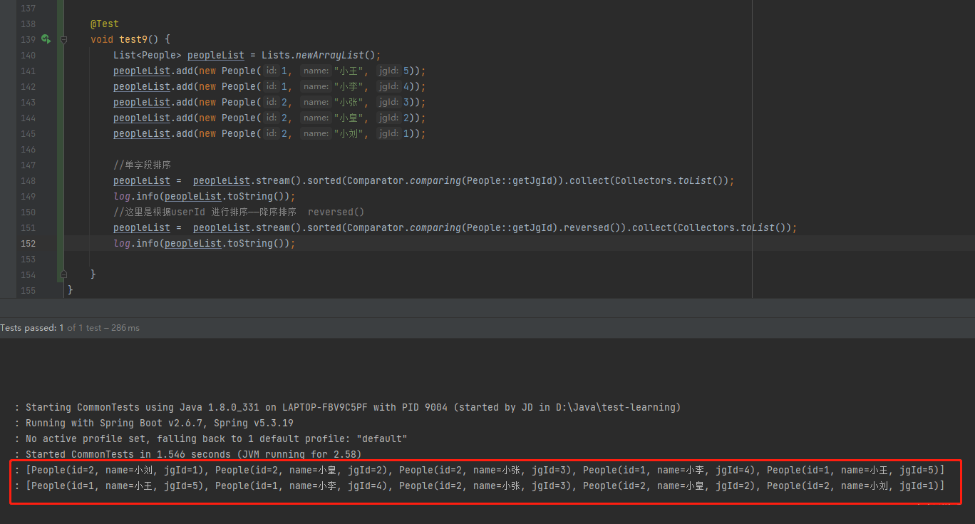 peopleList = peopleList.stream().sorted(Comparator.comparing(People::getJgId).reversed()).collect(Collectors.toList());