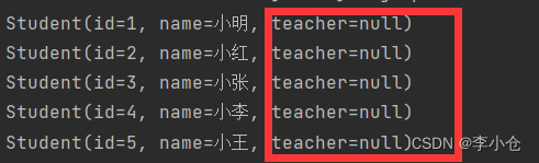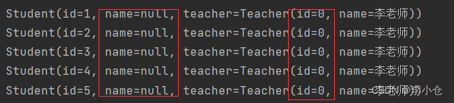 查询出来的需要展现的结果都应该在resultMap中进行定义,否则会以默认值进行展示如下,在resultMap中注释掉tid和sname后,执行的结果
