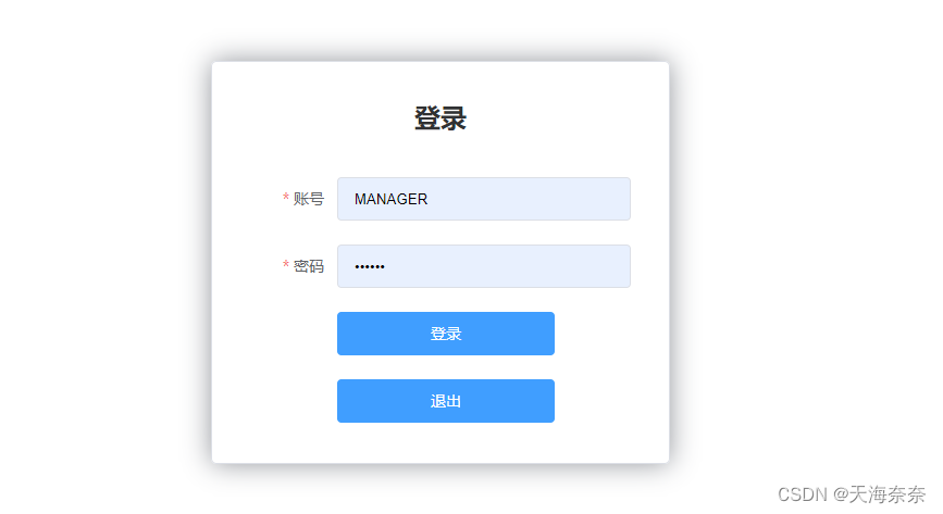 这算是完成了基础的登录功能,虽然我们并没有涉及到使用到session去保存用户信息以及去进行权限的判定,但是这个项目算是已经为后续的工作完成了基础的搭建后面只要在库中新建表或者在manager表上进行扩充,改写实体类并进行设计就可以添加更多的功能,这个前端登录页面也可以作为一个通用化的页面,只需要改变里面的的api接口就能做到重复使用。