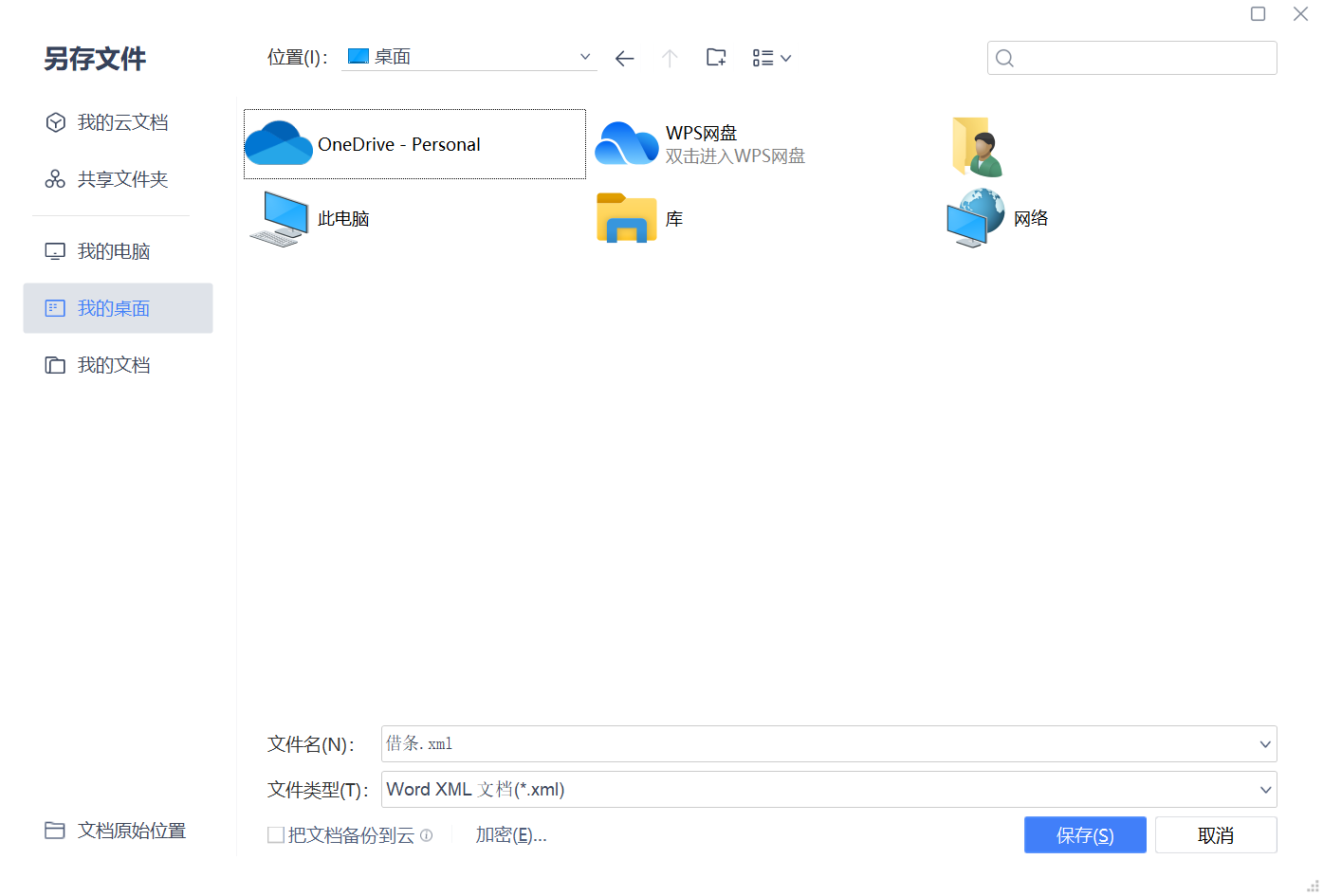 1、将准备好的Word模板文件另存为.xml文件(PS:建议使用WPS来创建Word文件,不建议用Office)