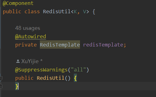 当然有些同学已经发现了,我这样封装,也没有解决RedisUtil后面的尖括号不输入内容出现警告的问题,因为我是业务需要,所以保留了尖括号指定类型