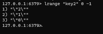 //读取存储的列表中的全部元素,0, -1代表从第一个元素到最后一个元素