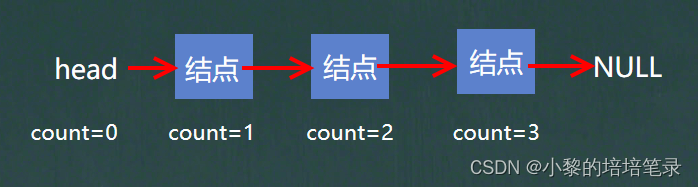 //首先创建头结点,此结点表示链表的头,无具体数据
