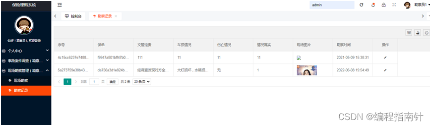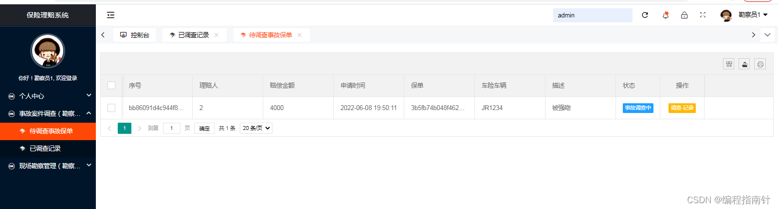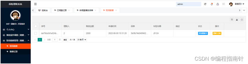 本系统基于Springboot开发实现了一个为用户车险进行理赔信息管理的一个信息化管理系统,核心的业务主要是用户申请保险理赔,管理员审核进入理赔程序,事故调查员对事故进行调查和现场勘察,这其中共涉及到三类用户,购买保险的客户,事故