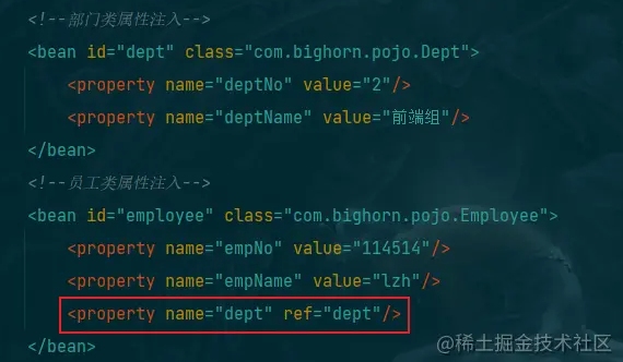 <bean id="dept" class="com.bighorn.pojo.Dept">