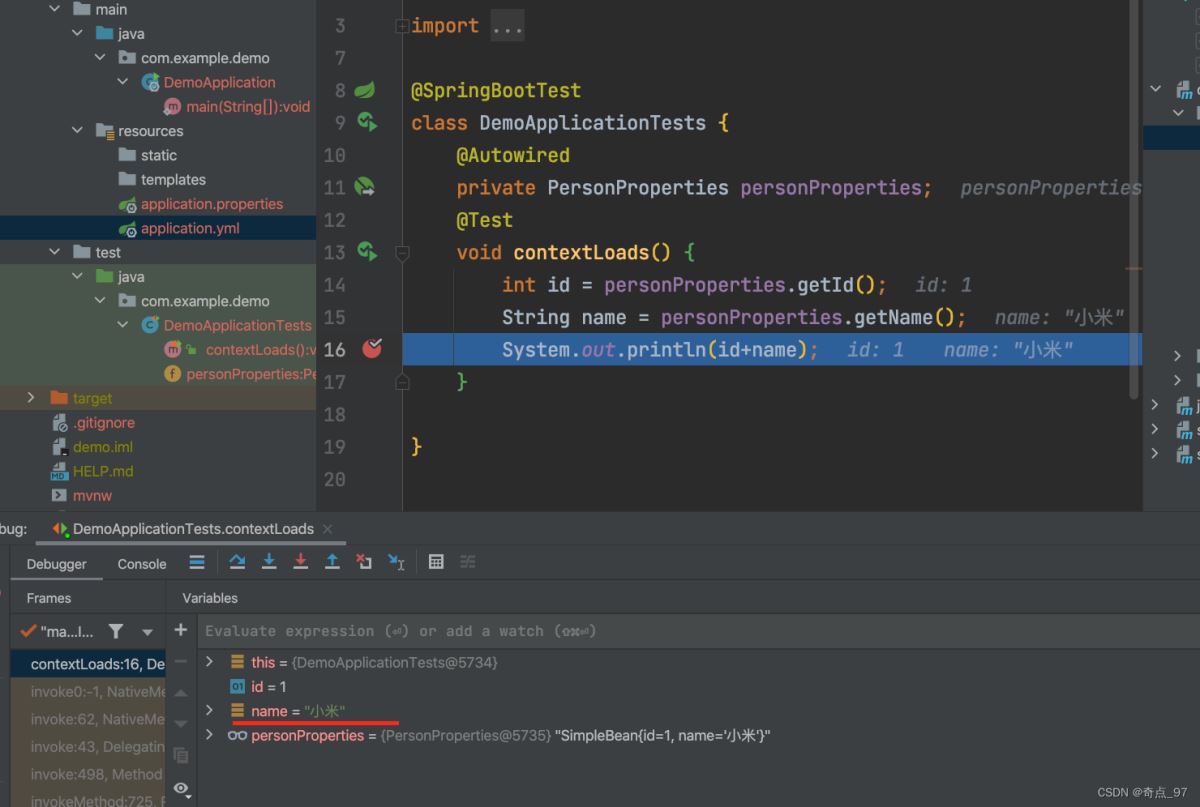 在使用Spring官方的Starter时通常可以在application.properties中来配置参数覆盖掉默认的值。即name的值会被配置文件中的值替换掉。