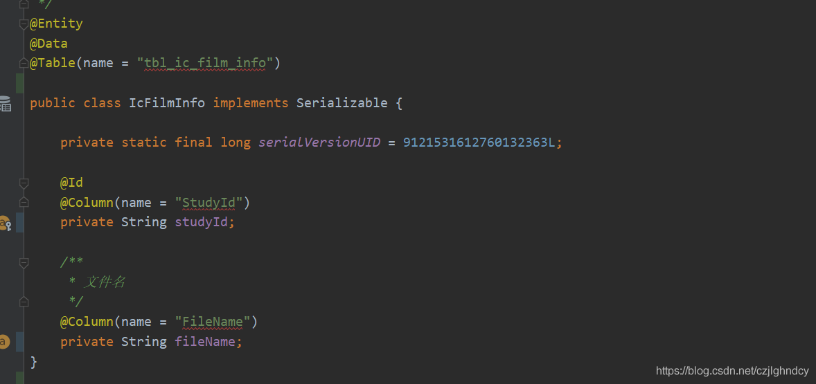 我的实体类是这么定义的(因为我只需要StudyId和FileName的信息就行了):