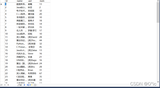 System.out.println("id=" + id + " name=" + name + " aut:" + aut + " num:" + num);