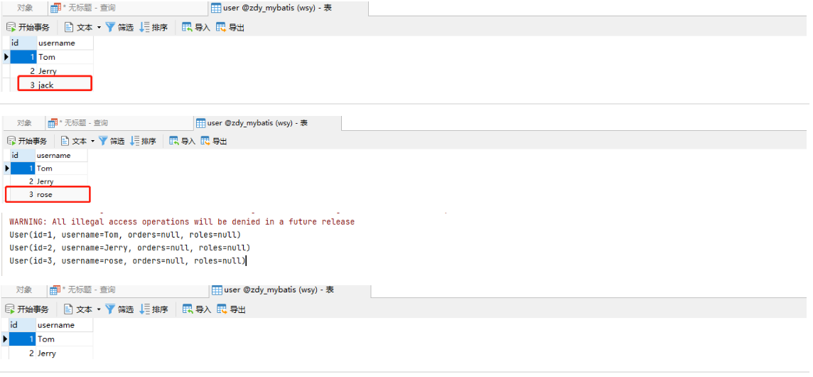 User(id=2, username=Jerry, orders=null, roles=[Role(id=1, roleName=董事长), Role(id=2, roleName=经理)])