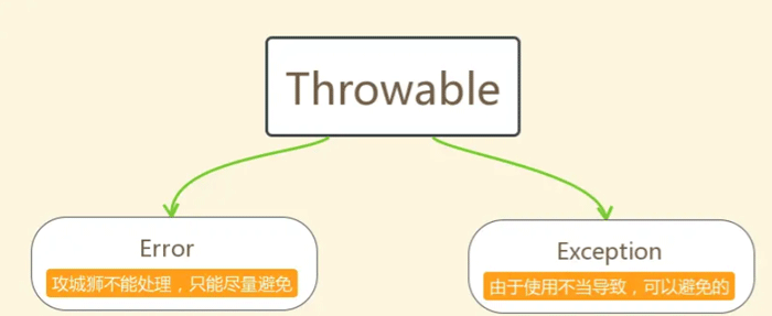 - Error:严重错误Error,无法通过处理的错误,只能事先避免,好比绝症。