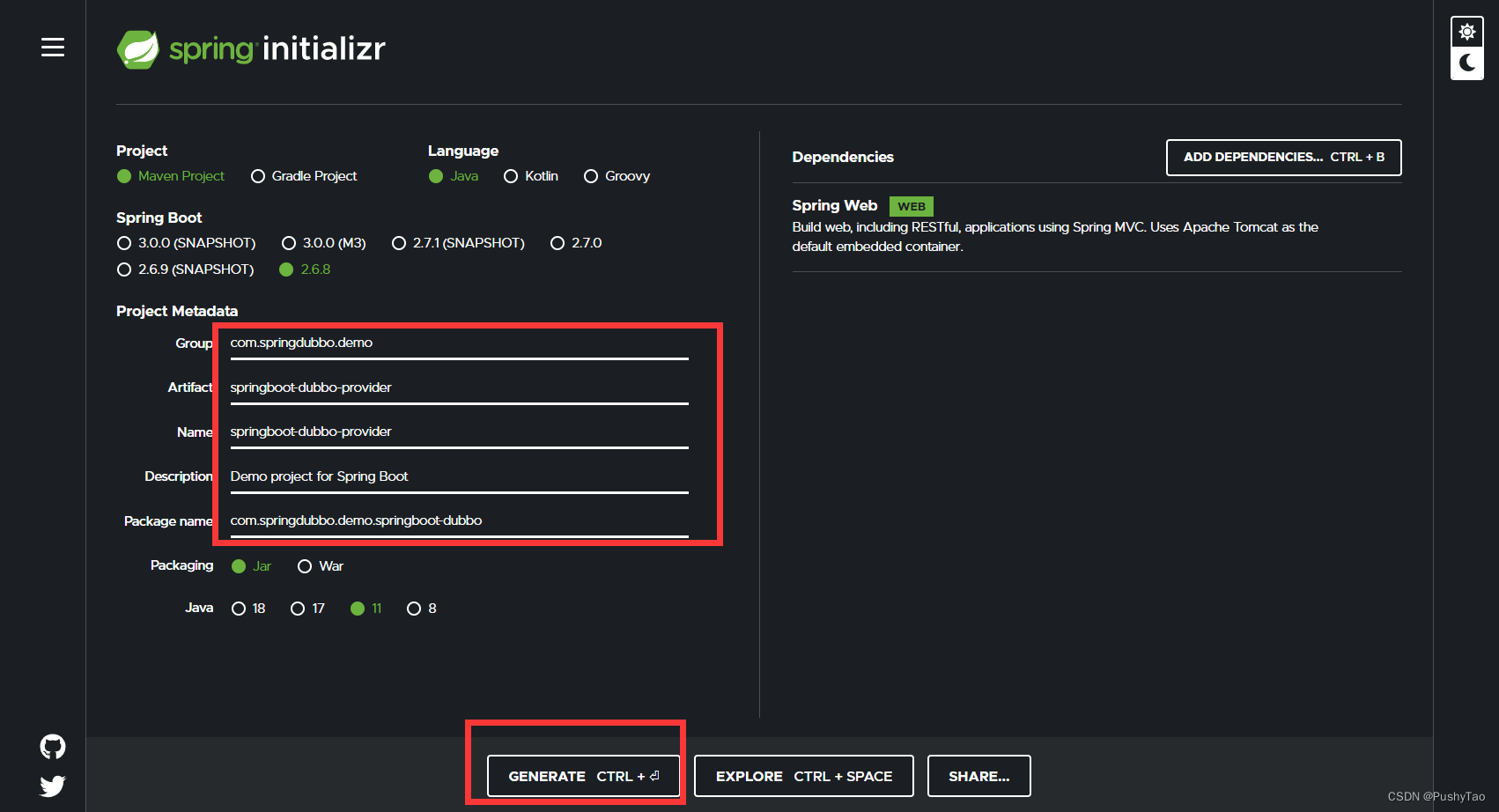 要新建两个项目,第一个项目如上图所示,第二个项目只需要将provider改为consumer