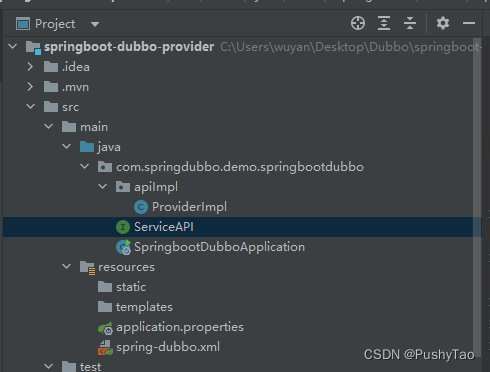 <dubbo:service interface="com.springdubbo.demo.springbootdubbo.ServiceAPI" ref="providerImpl"