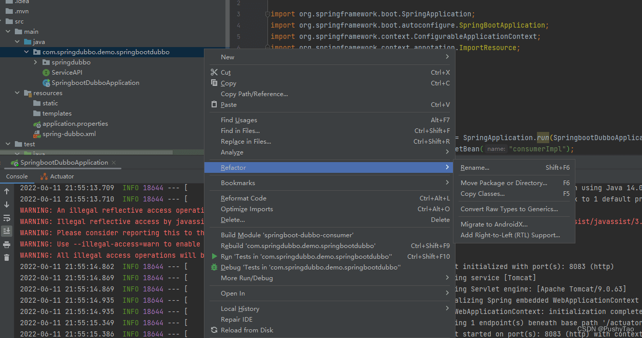 ConfigurableApplicationContext count = SpringApplication.run(SpringbootDubboApplication.class, args);