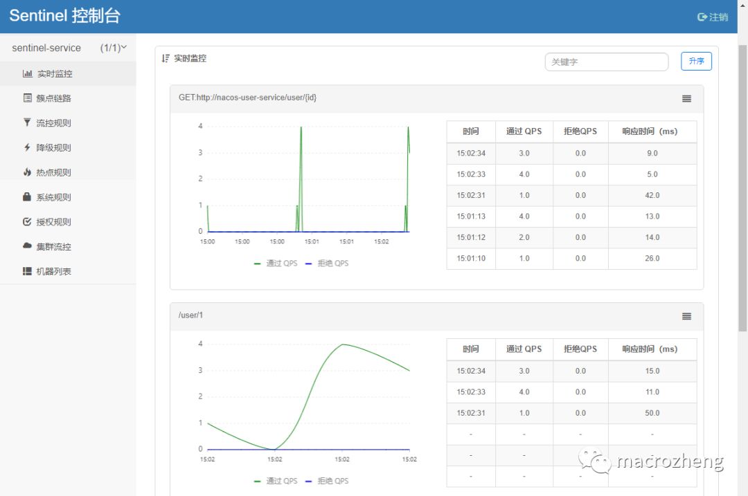 Sentinel 支持对服务间调用进行保护,对故障应用进行熔断操作,这里我们使用RestTemplate来调用nacos-user-service服务所提供的接口来演示下该功能。