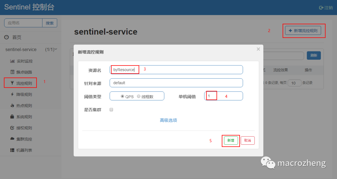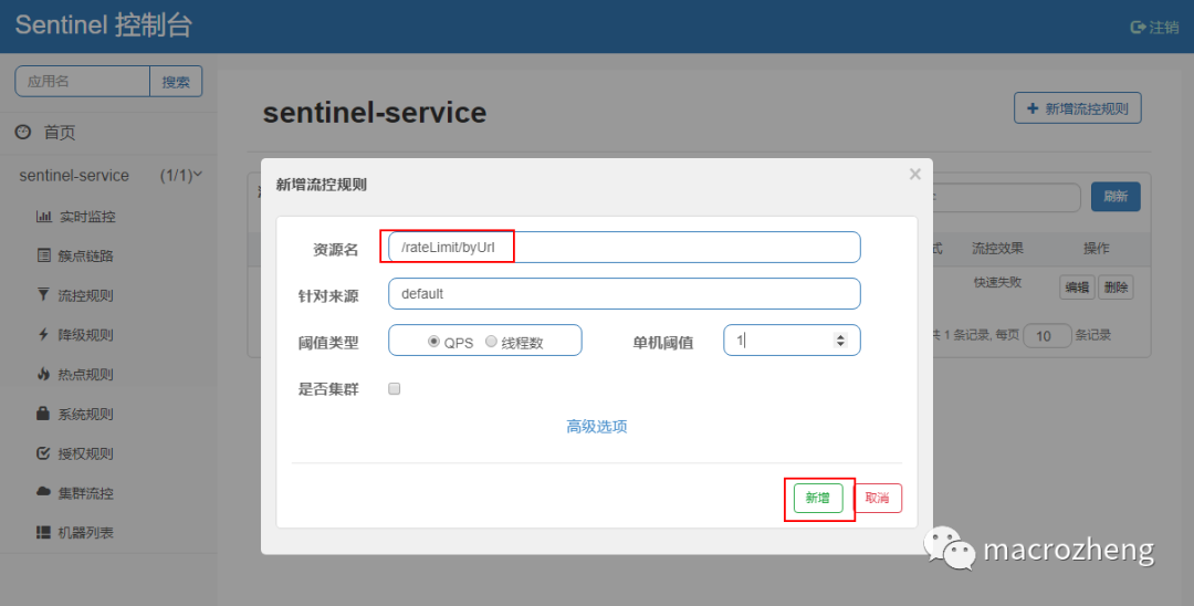 - 在Sentinel控制台配置流控规则,根据@SentinelResource注解的value值:
