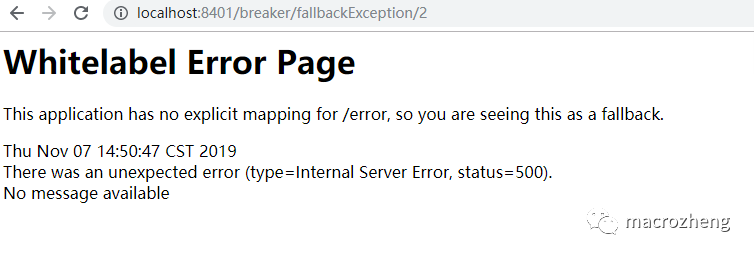 调用如下接口会发生服务降级,返回服务降级处理信息:http://localhost:8401/user/4