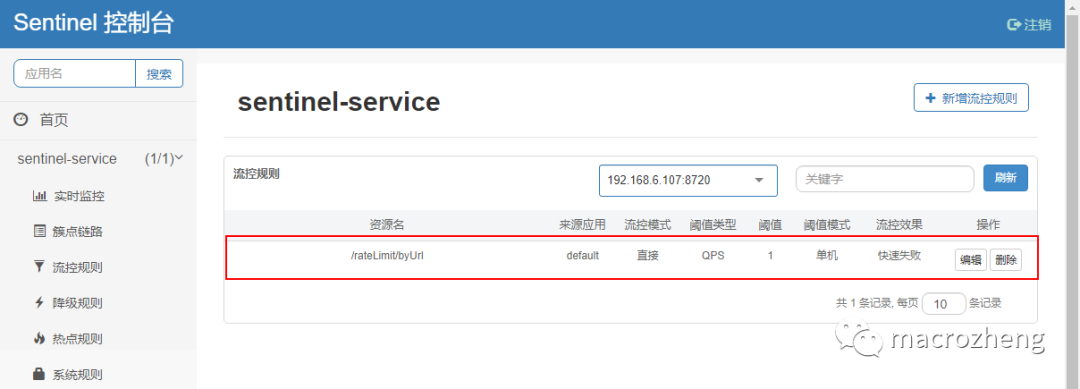 在Sentinel控制台配置流控规则,使用访问的URL: