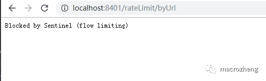 快速访问上面的接口,可以发现返回了自己定义的限流处理信息:
