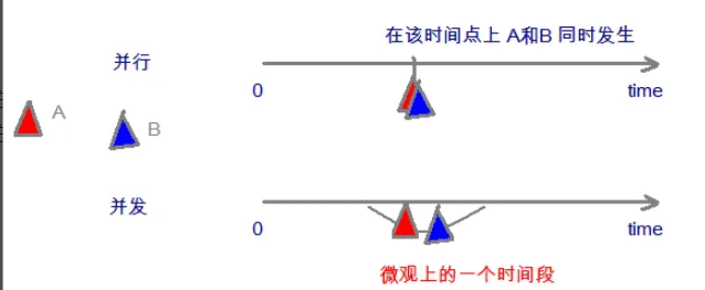 - 并发:指两个或多个事件在同一个时间段内发生。