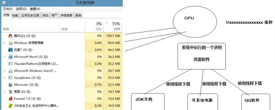 简而言之:一个程序运行后至少有一个进程,一个进程中可以包含多个线程