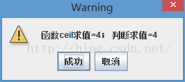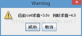 JOptionPane.showOptionDialog(null, "函数ceil求值=" + result1 + "; 判断求值=" +result2,