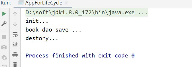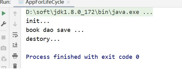 <bean id="bookDao" class="com.itheima.dao.impl.BookDaoImpl" init-method="init" destroy-method="destory"/>步骤3:运行程序