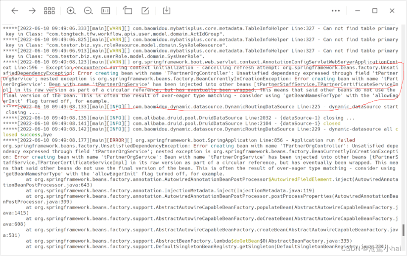 从日志中可以看到是 tPartnerOrgService 这个bean出现了循环依赖