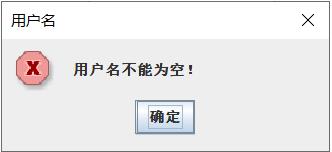 JOptionPane.showMessageDialog(null, "用户名不能为空!", "用户名", JOptionPane.ERROR_MESSAGE);