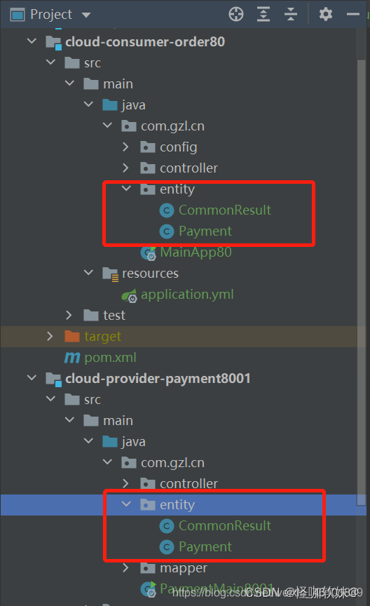 (4)、将entity放到这个项目当中